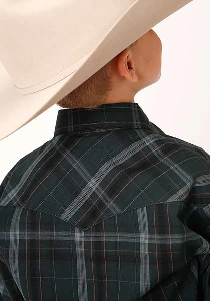 Forest Green and Navy Plaid Long Sleeve Snap Front Shirt.