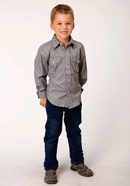 Grey and White Diamond Print Long Sleeve Snap Front Shirt.