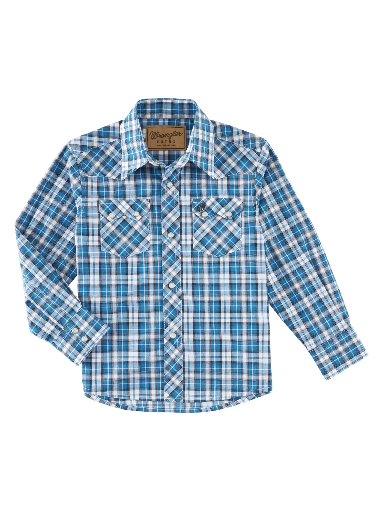 Wrangler Boy’s Blue Plaid Snap Front Long Sleeve