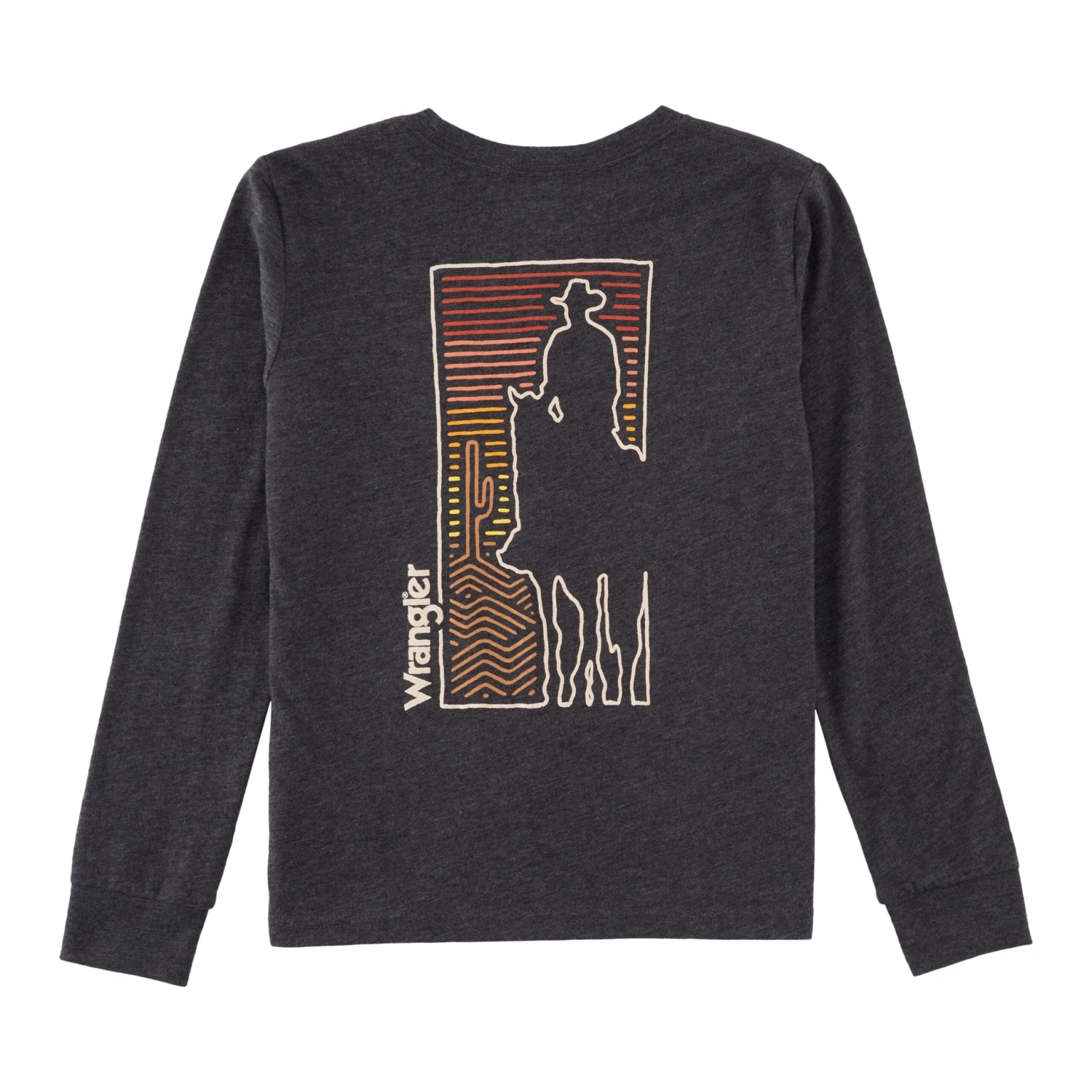 Wrangler Boys Charcoal Heather Horse Rider T-Shirt Long Sleeve