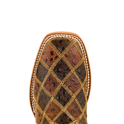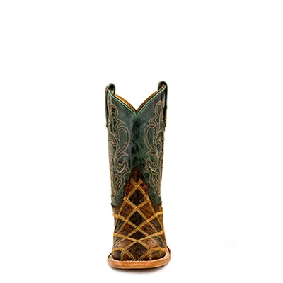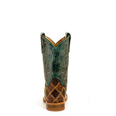 Angry Bird Patchwork Square Toe Boot with Turquoise Rocksteer Upper.