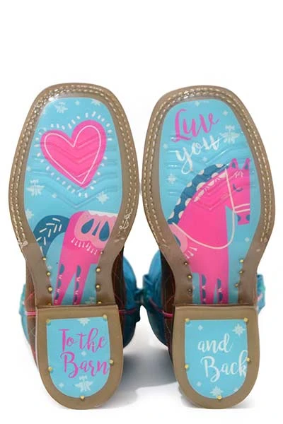 Brown and Turquoise Hearts & Colts Western Boot with Diamond Stitch.