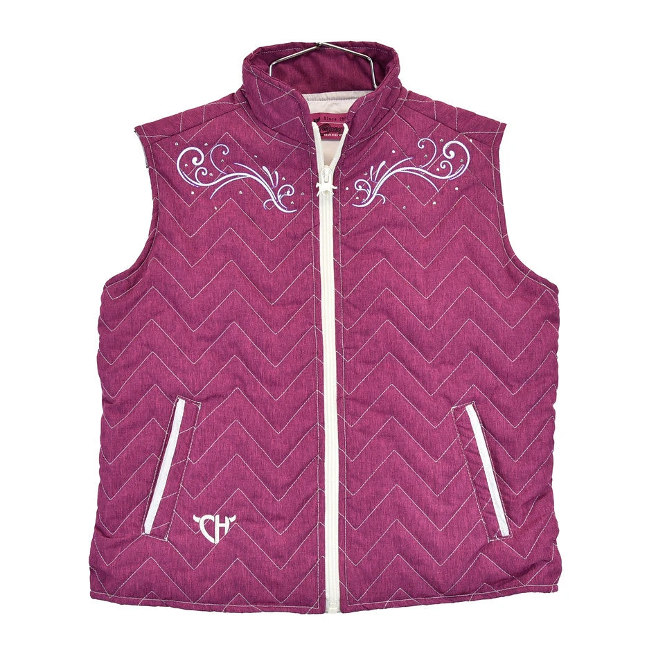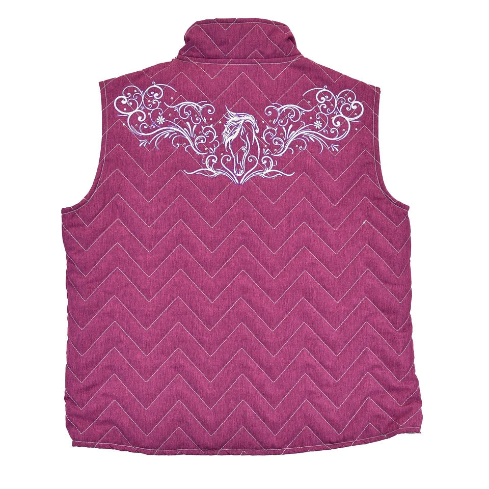 Orchard Pink Zig-Zag Quilted Vest with Swirl and Horse Embroidery.