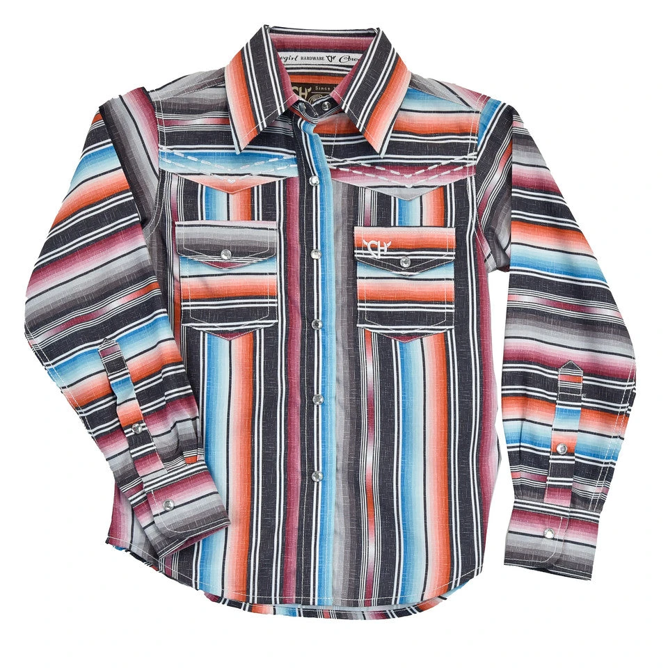 Dark Chocolate Serape Long Sleeve Snap Front Shirt.