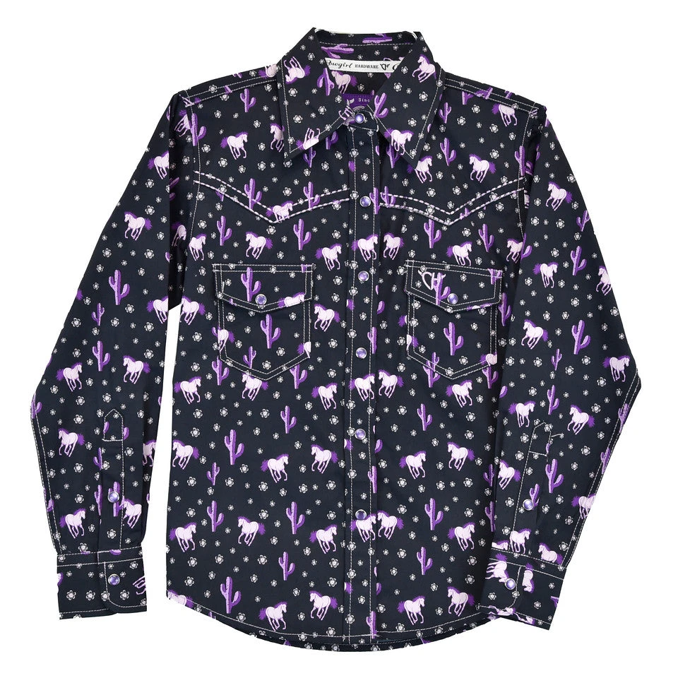 Black with Horse and Cactus Print Long Sleeve Snap Front Shirt.