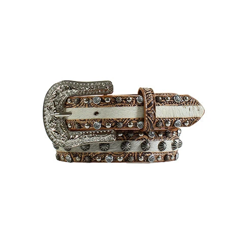Brown Floral Embossed Western Belt with Calf Hair Inlay.