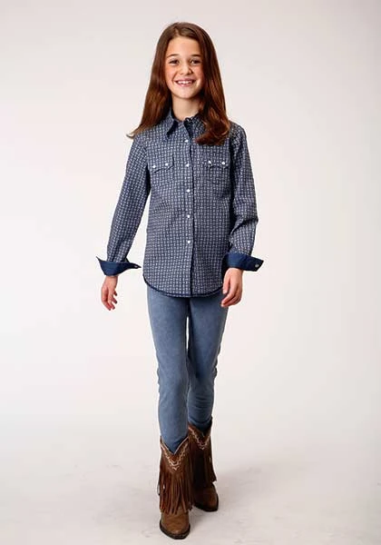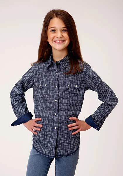 Blue Checkered Arrows Long Sleeve Snap Front Shirt.