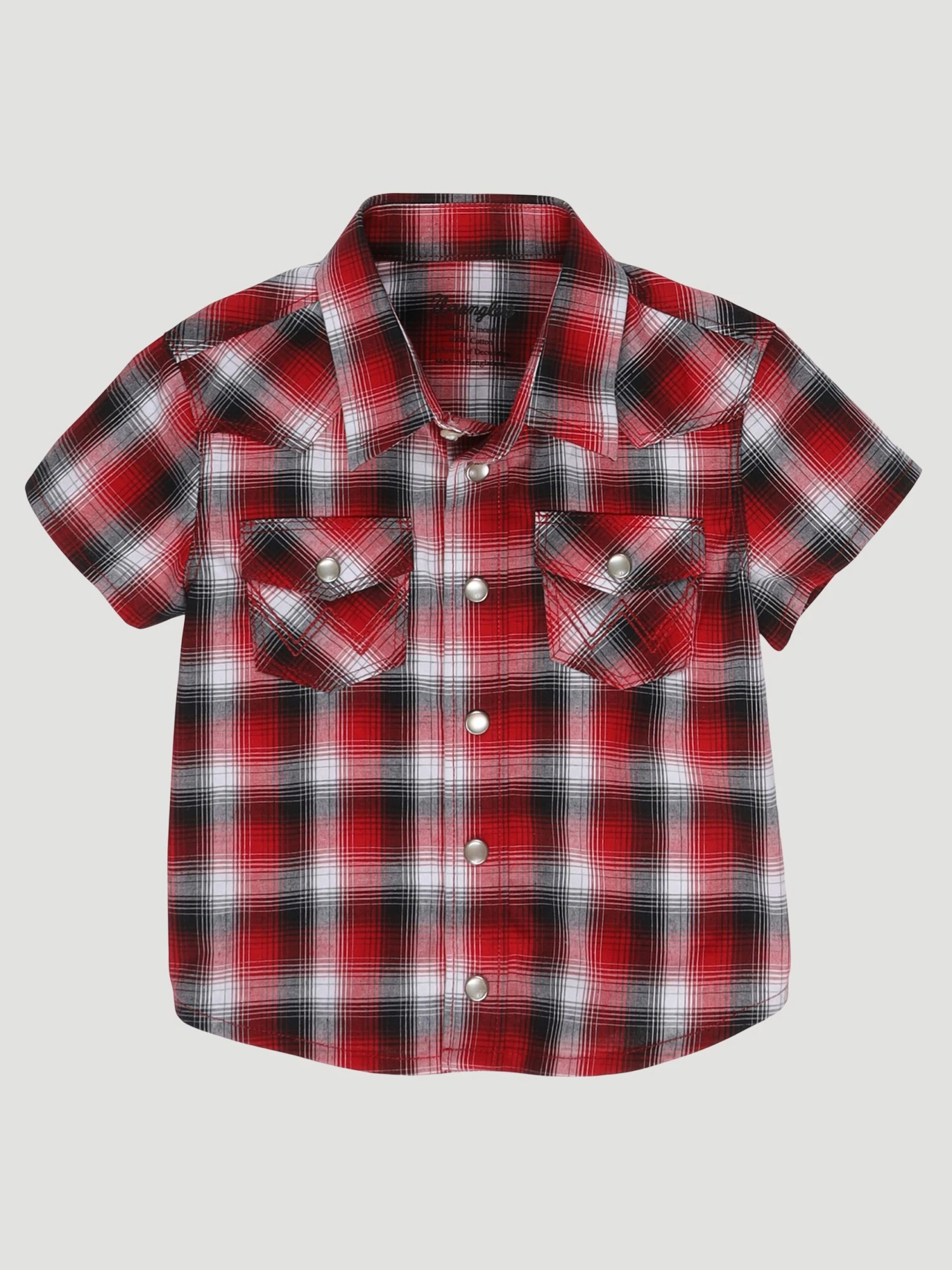 Red Maple Plaid Short Sleeve Snap Front Shirt.