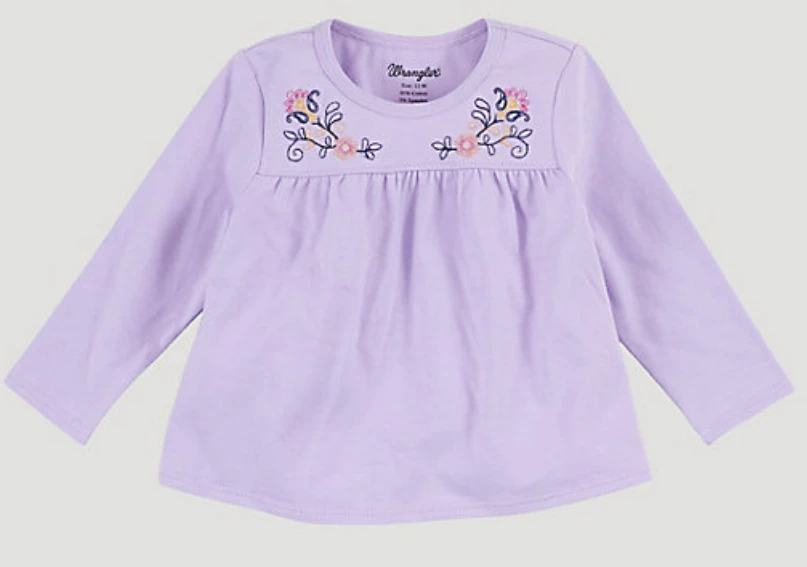 Purple Long Sleeve Shirt with Floral Embroidery.