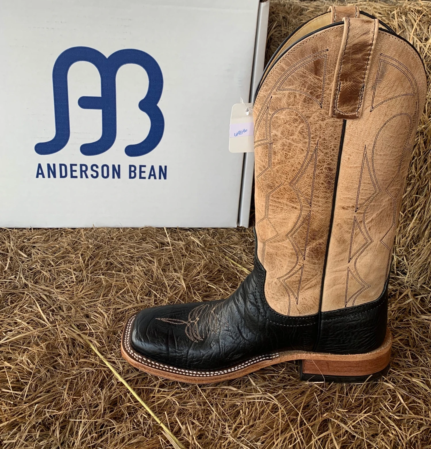 Black Oiled Shoulder Square Toe Boot with Ivory Mad Dog Top.