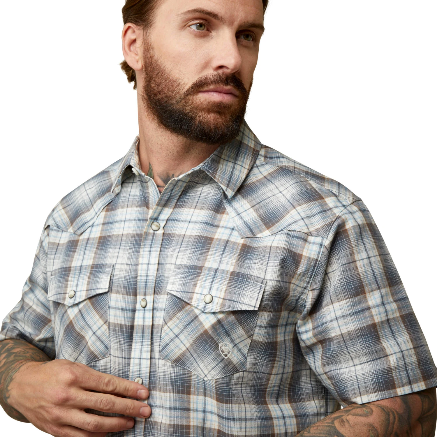White Asparagus Plaid Short Sleeve Hargo Retro Fit Snap Front Shirt.