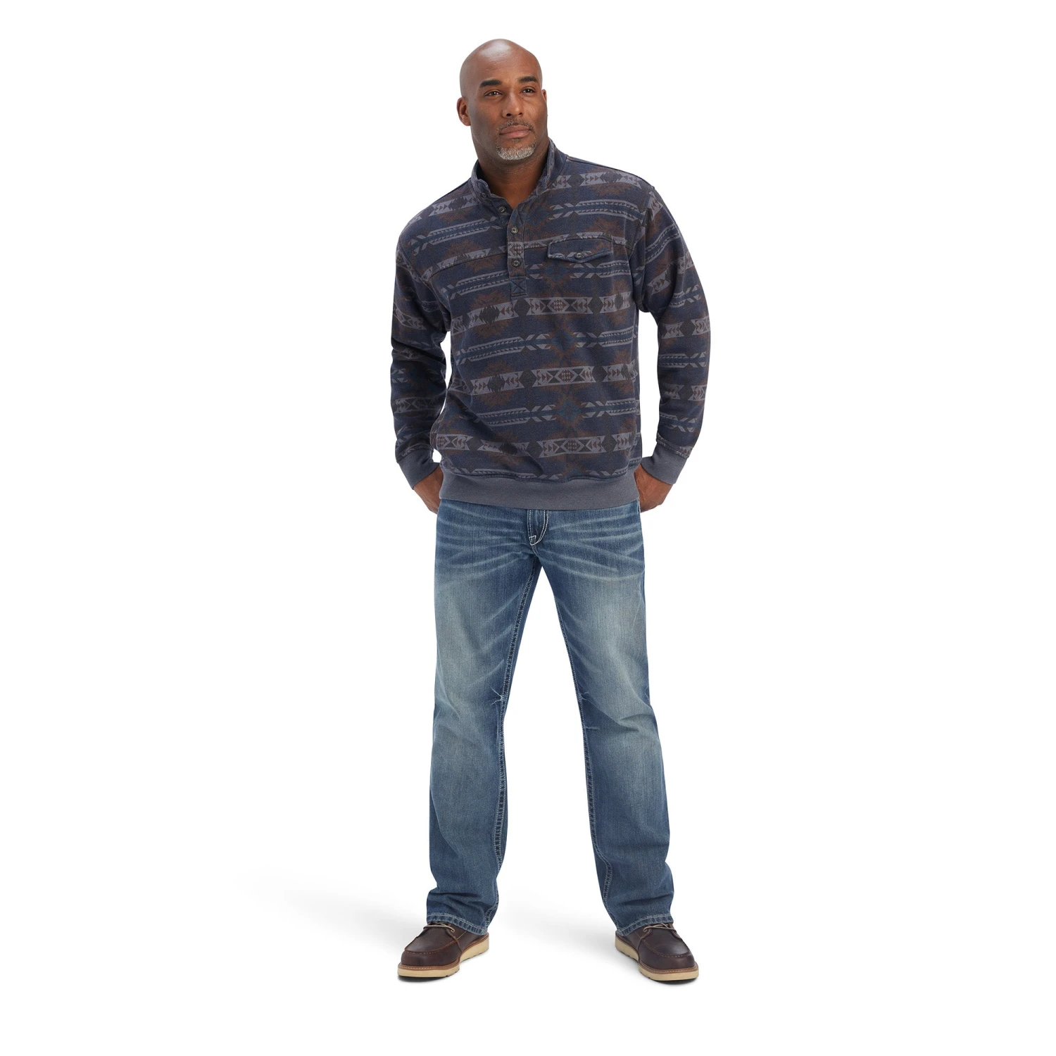 Maritime Blue Southwest Printed Overdyed Washed Sweater.
