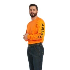 Safety Orange and Black Long Sleeve Rebar Cotton Strong Graphic T-Shirt.