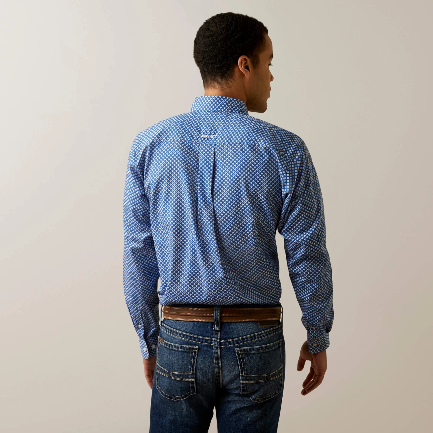 Bright Cobalt with Print Long Sleeve Wrinkle Free Wren Fitted Button Down Shirt.