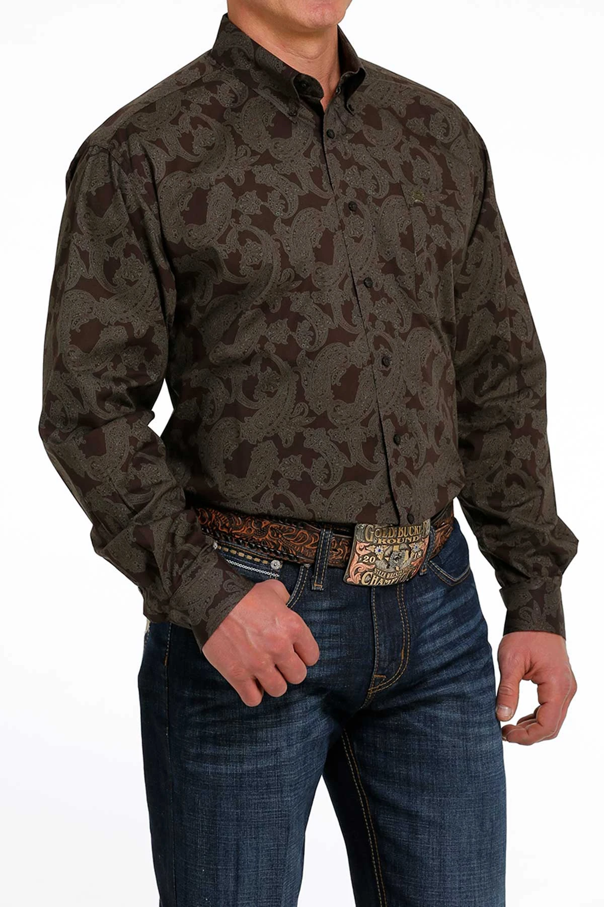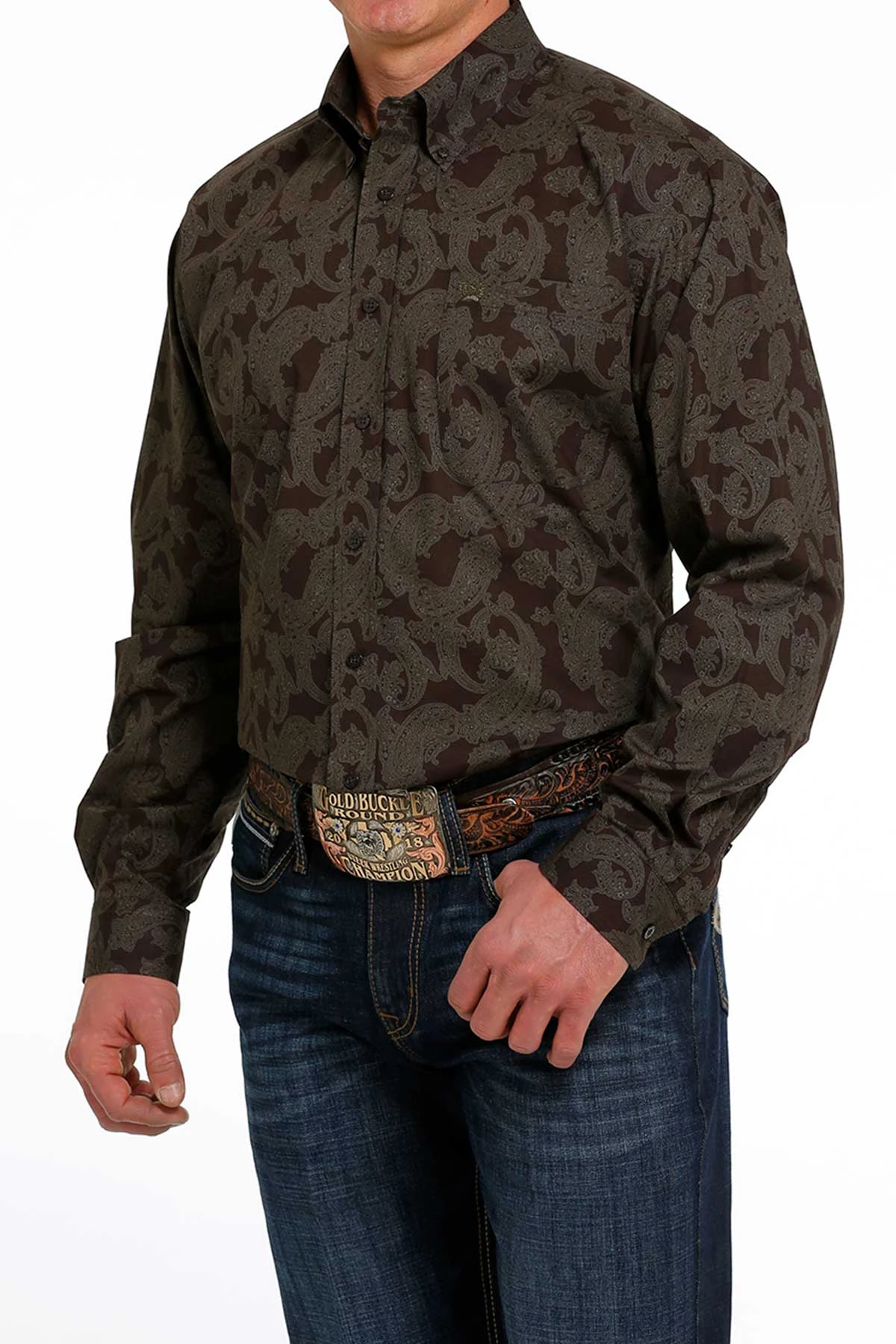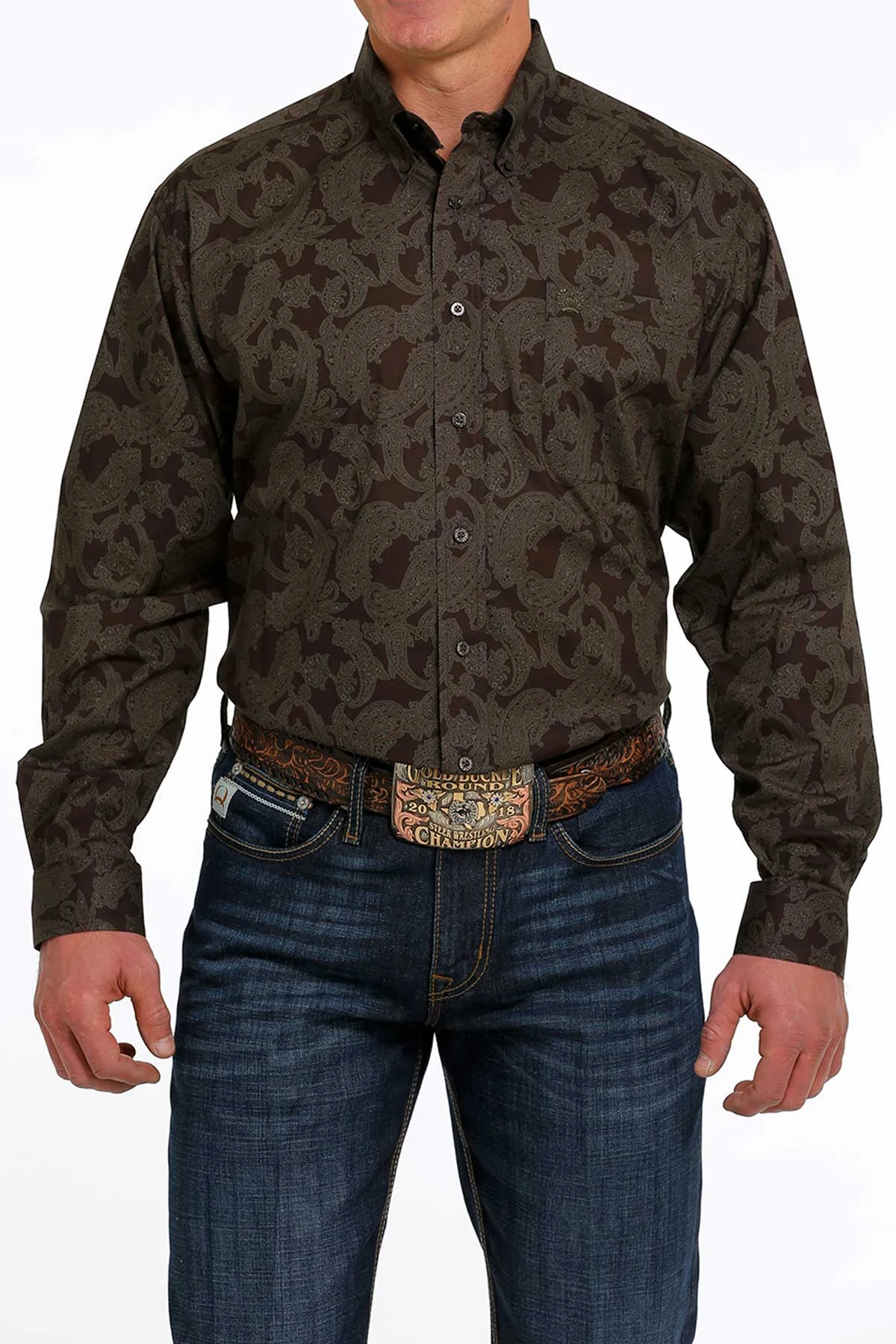 Cinch Men’s Brown Paisley Button Down Long SleeveÂ