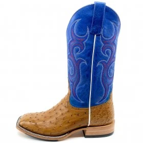 Antique Saddle Full Quill Ostrich and Blue Western Boot.