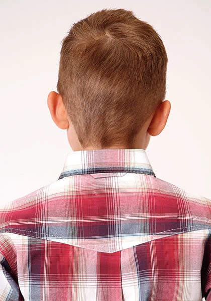 Red Apple and Blue Plaid Short Sleeve Button Down Shirt.