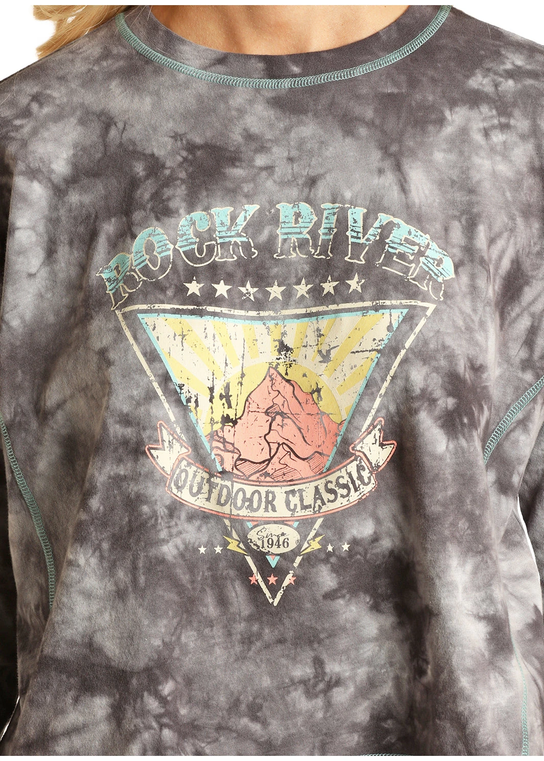 Indigo Tie Dye Long Sleeve T-Shirt with Rock River Graphic.