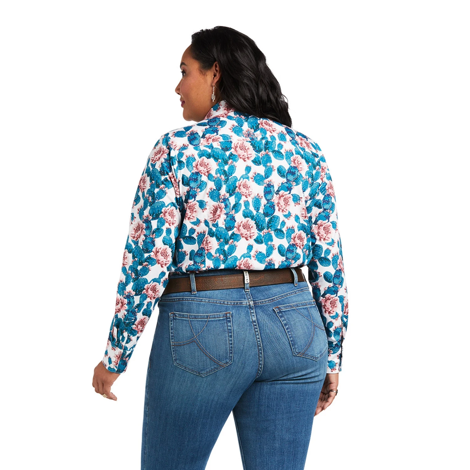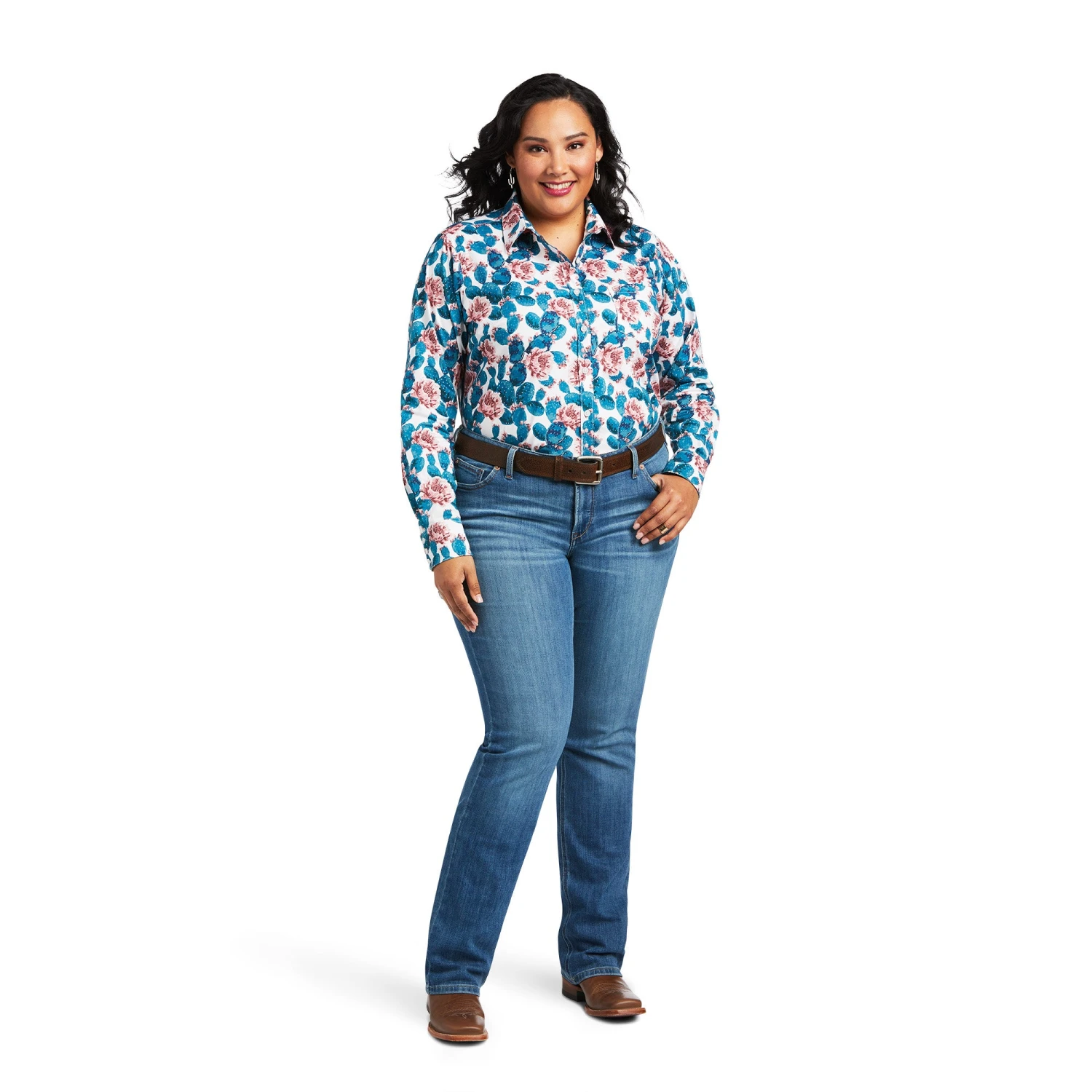 Hibiscus Cactus Print Long Sleeve Kirby Stretch Button Down Shirt.
