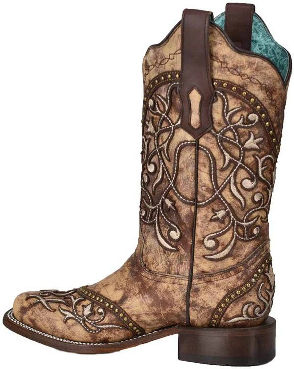 Corral Women’s Taupe Overlay & Embroidered with Studs Square Toe