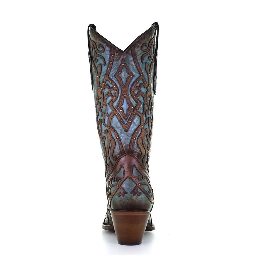 Turquoise and Brown with Embroidery and Studs Western Boot.