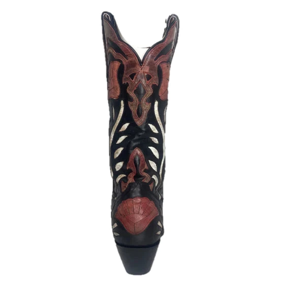 Dan Post Women’s Black With Red Floral Inlay Snip Toe
