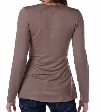 Mocha Long Sleeve Blouse with Embellished Native American Headdress.
