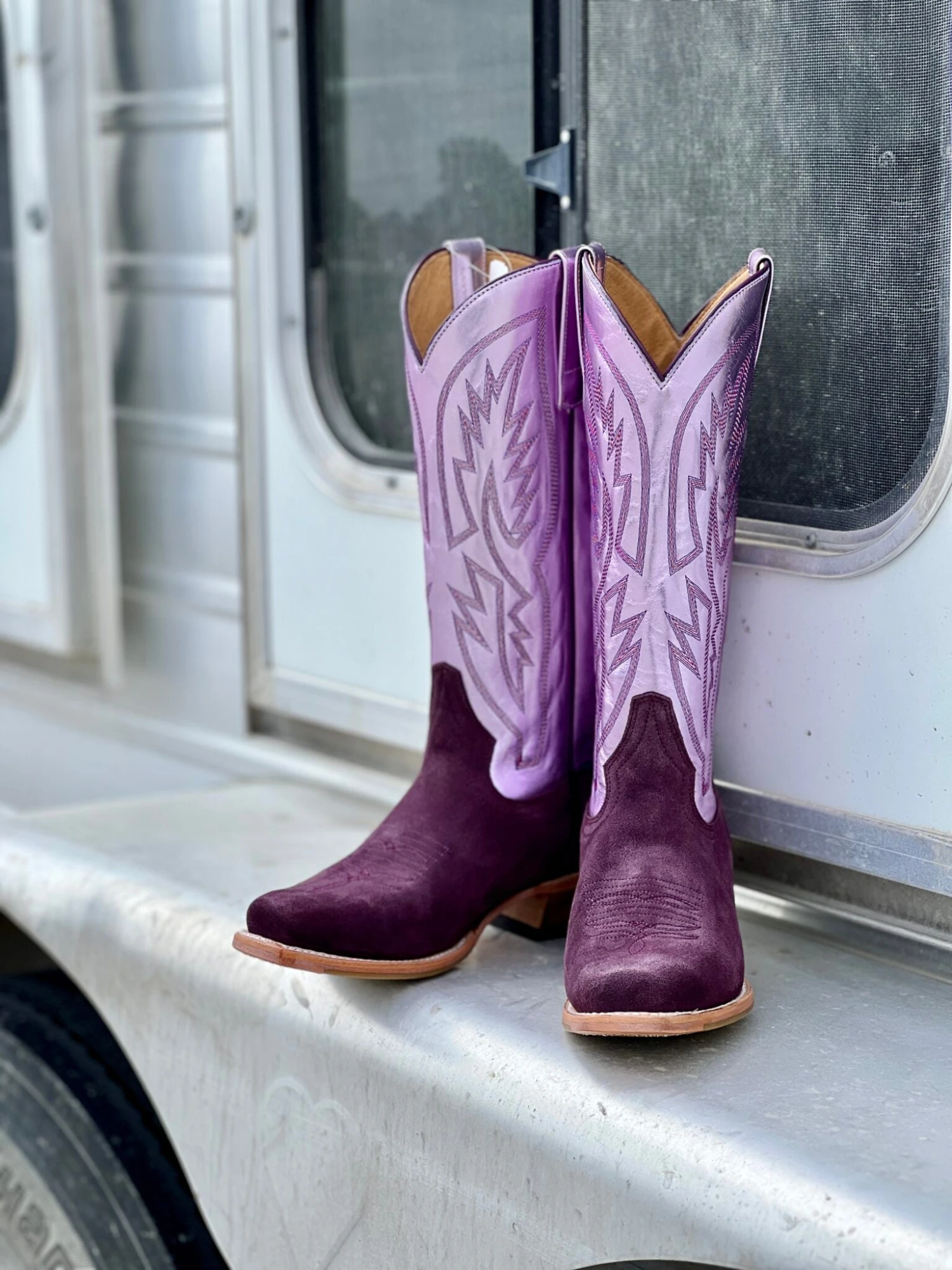 Macie Bean Women’s Cosmic Cowgirl Violet Suede & Metallic Square Toe