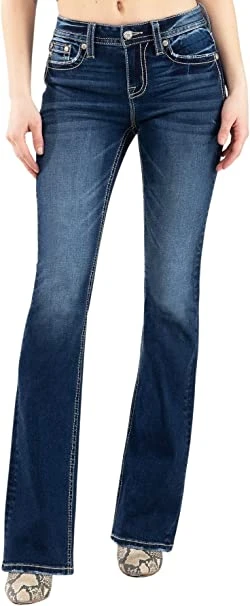 Miss Me Women’s Mid Rise Bootcut Brown X Stitching Pocket