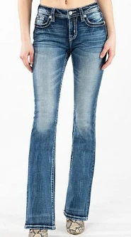 Medium Wash Bootcut Jean with Southwestern Eagle Pockets.