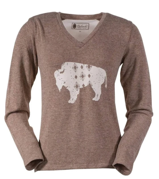 Tan Long Sleeve T-Shirt with Buffalo Screen Print.