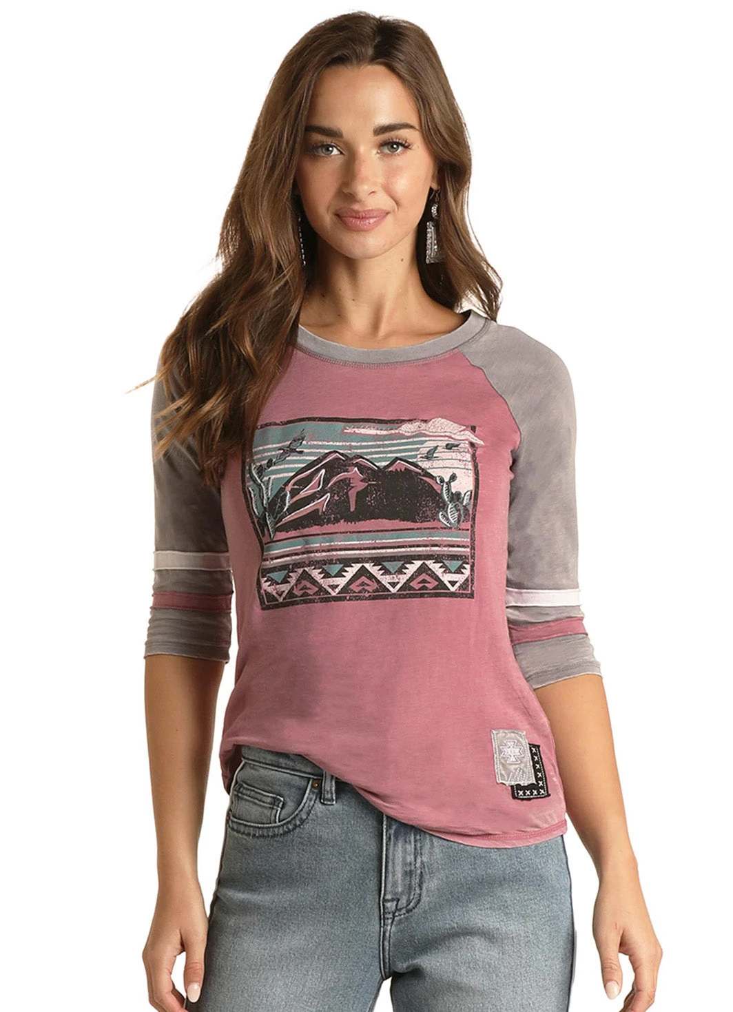 Heather Pink and Grey Mountain Screen Print T-Shirt.