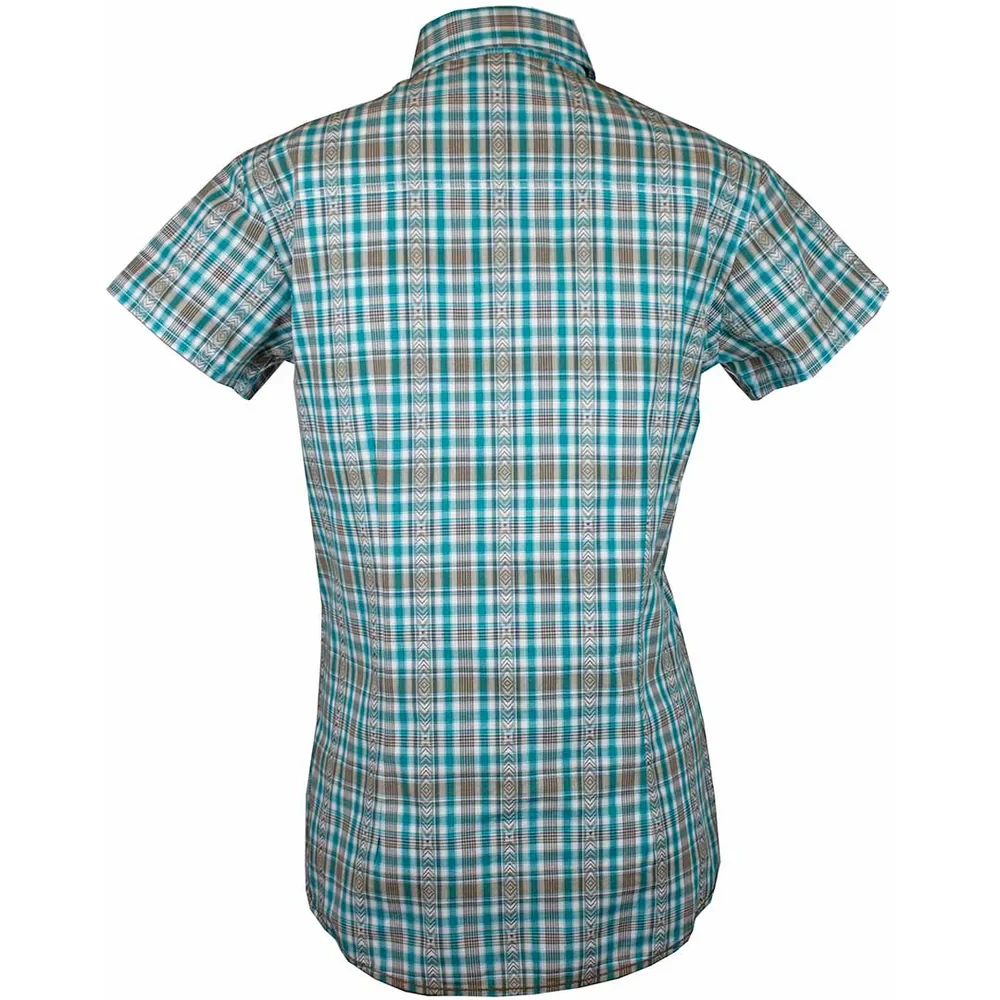 Rough Stock Women’s Turquoise & Brown Plaid Button-Up Short Sleeve