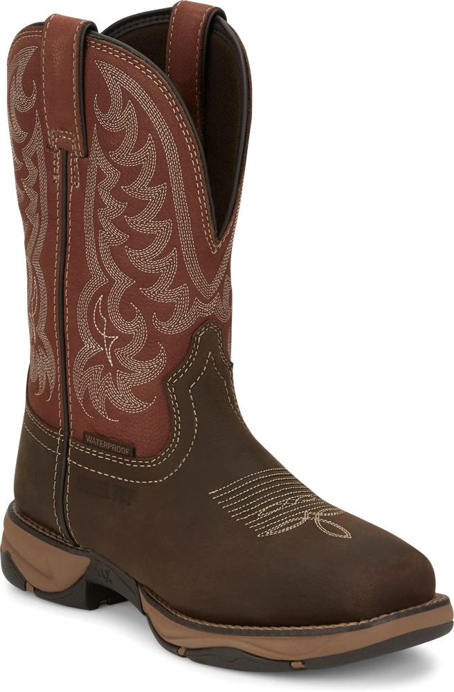 Brown and Ruby Red Waterproof Steel Toe Josey Work Boot.