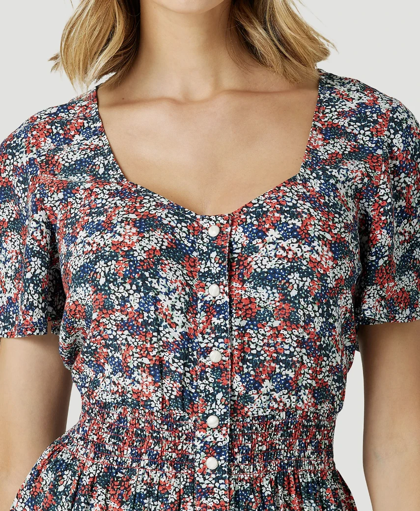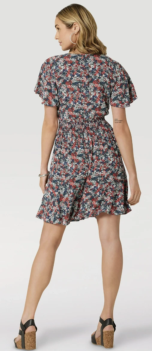 Blue and Red Floral Snap Front Flutter Dress.