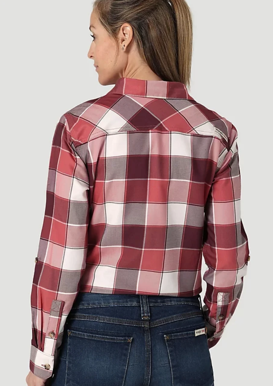 Wine Plaid Long Sleeve Flannel Button Down Shirt.